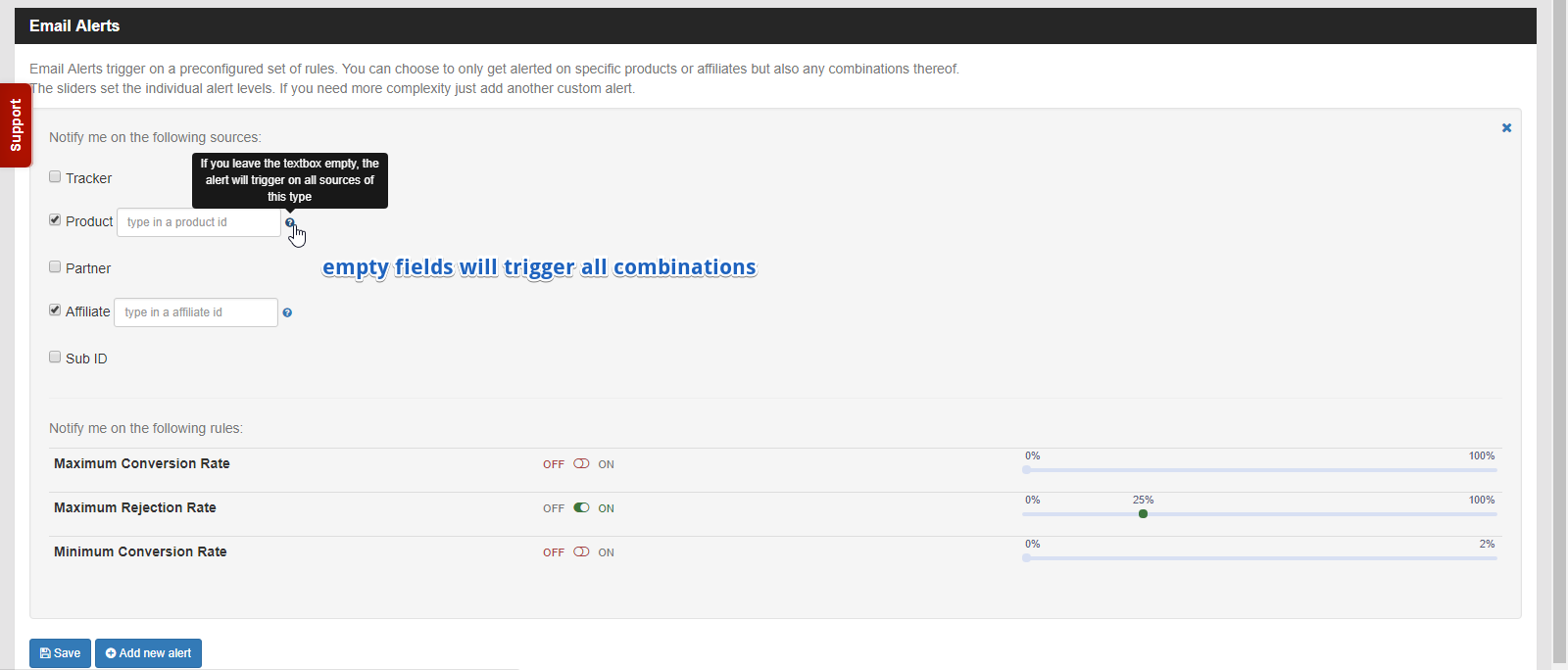 *the rates are calculated per day for the previous day - so you will always receive the alert based on data from yesterday