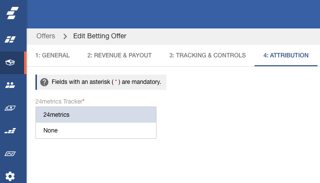 Inside Everflow Copy the Public ID / Tracker ID from 24metrics into the Integration section.